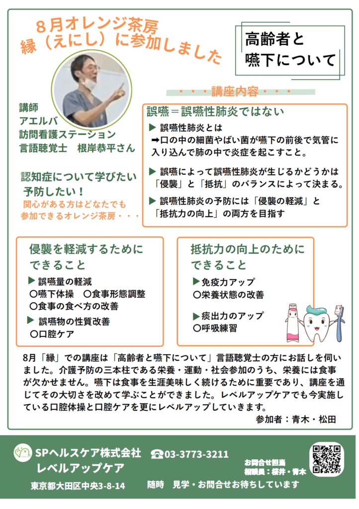 レベルアップケア通信9月号 投稿者:levelup-care 投稿公開日:2025年9月22日 投稿カテゴリー:未分類 レベルアップケアは東京都大田区にあるデイサービス施設です。大田区のデイサービスならレベルアップケア… 大田区 デイサービス大田区 高齢者支援大田区 通所介護大田区 介護施設 レベルアップケア おすすめ 2024年9月号 レベルアップケア通信 2025年1月16日 大田区で安心のデイサービスを提供|レベルアップケア通信7月号 2025年7月8日 2024年10月号 レベルアップケア通信 2025年1月16日