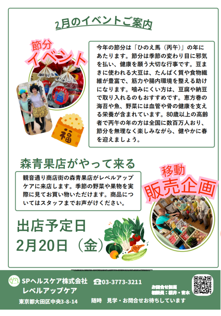 2026年1月|大田区中央の通所介護 レベルアップケア通信 投稿者:levelup-care 投稿公開日:2026年1月13日 投稿カテゴリー:未分類 おすすめ 大田区で安心のデイサービスを提供|レベルアップケア通信6月号 2025年6月4日 レベルアップケア通信9月号 2025年9月22日 2025年5月号 レベルアップケア通信 2025年5月2日